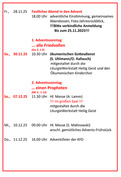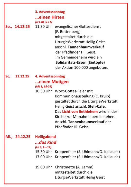 2. Advent, 07. Dezember 2025, 15.00-17.00 Uhr